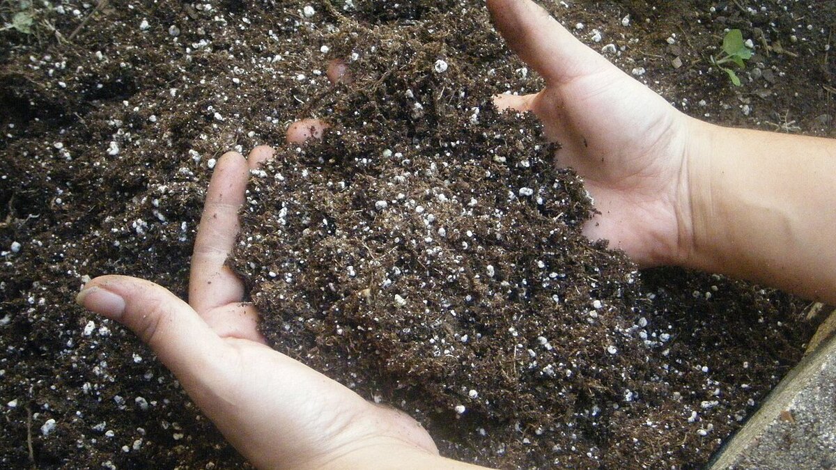- Добавьте равные части перлита или вермикулита к почве и тщательно все перемешайте до однородного состояния.