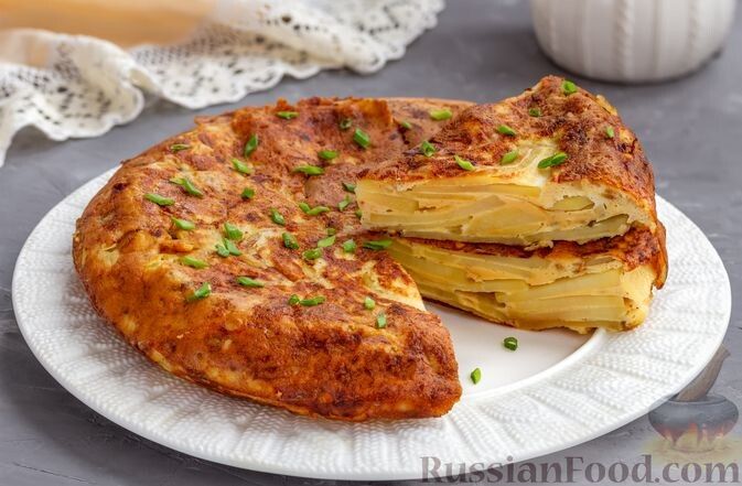 Кроме того, омлет с картофелем и луком напомнит вам о запеканке, но с корнями в сковороде. Тонкие кружочки картофеля обжариваются с луком и ароматными пряностями, а затем смешиваются с яичной массой.