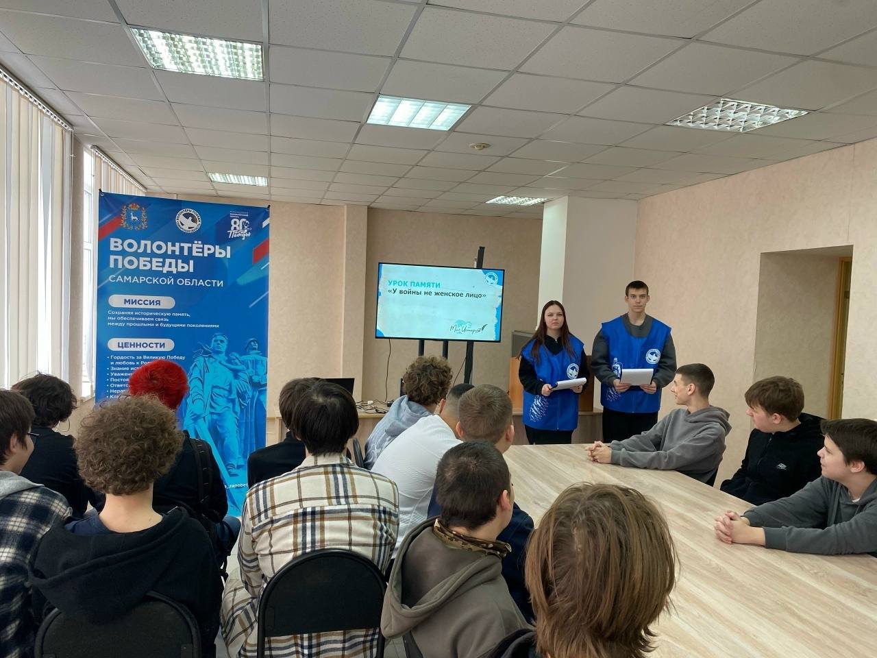 В преддверии Международного женского дня студенты колледжей - активисты Тольяттинского отделения движения "Волонтёры Победы" - провели Всероссийский урок памяти "У войны не женское лицо" в Тольяттинском экономико-технологическом колледже, Тольяттинском химико-технологическом колледже, Тольяттинском электротехническом техникуме, Колледже технического и художественного образования, Гуманитарном колледже.