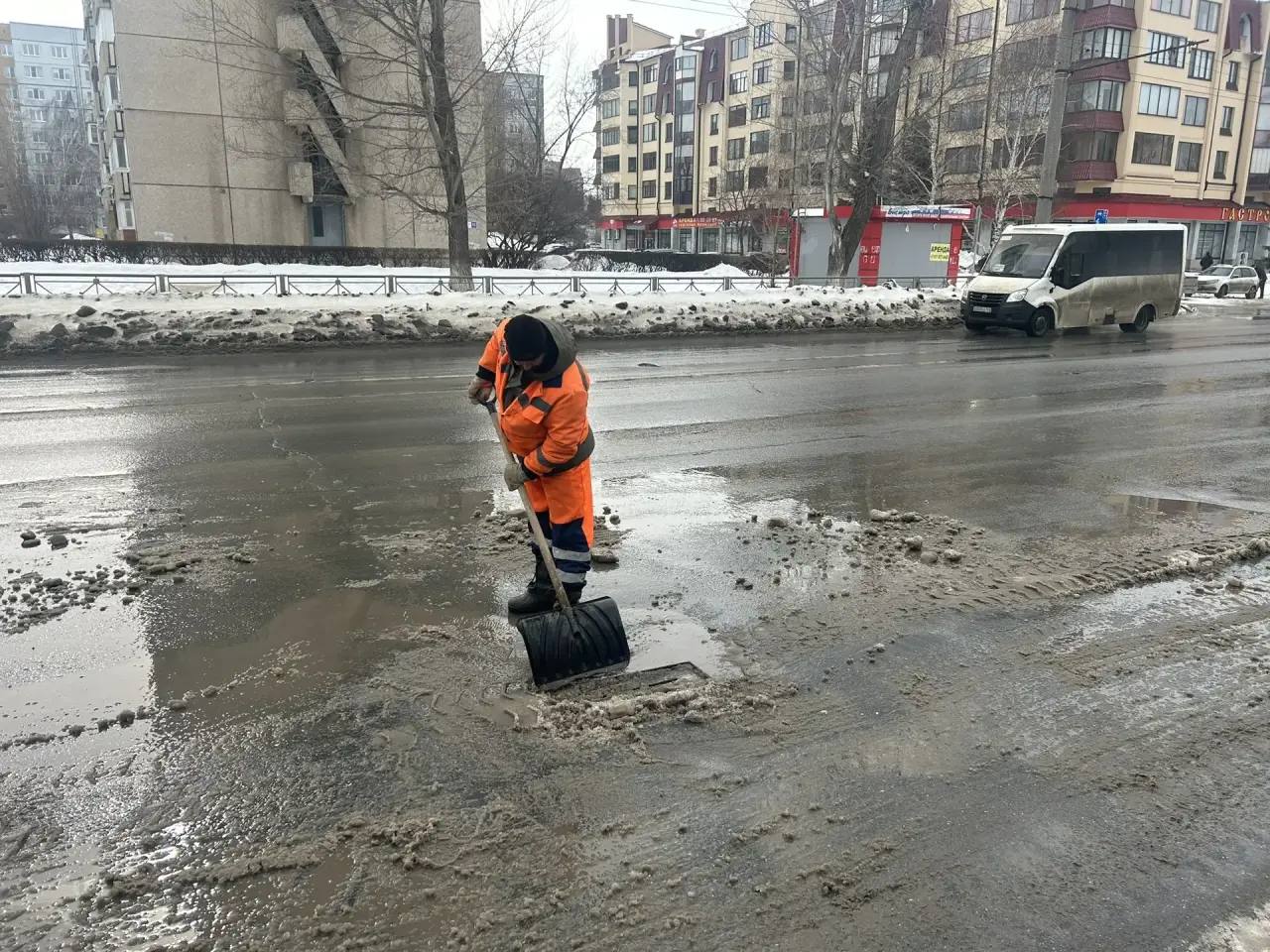 Одновременно во всех районах города ведется расчистка дождеприемников, чтобы талая вода уходила с дорог, не разрушая асфальт еще сильнее.