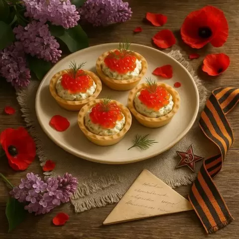 Тарталетки «Победный салют» с красной икрой