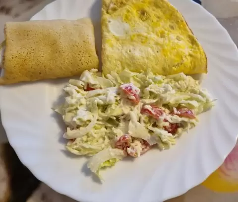 После того как все ингредиенты будут подготовлены, их необходимо перемешать с небольшим количеством соли и добавить сметану. Получившийся салат порадует своей легкостью и несомненно вызовет аппетит.