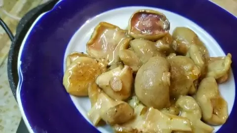 Как только бульон закипел, крышку можно снять и продолжать готовить на сильном огне до тех пор, пока не выпарится большинство жидкости. В итоге, когда остаётся только небольшое количество сока, стоит уменьшить огонь до минимума и добавить 100 граммов сливочного масла. Это придаст маслятам насыщенный вкус.