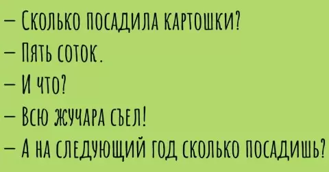 — Отлично! Один мешок посадил, один собрал, и ни одной картофелины не пропало!
