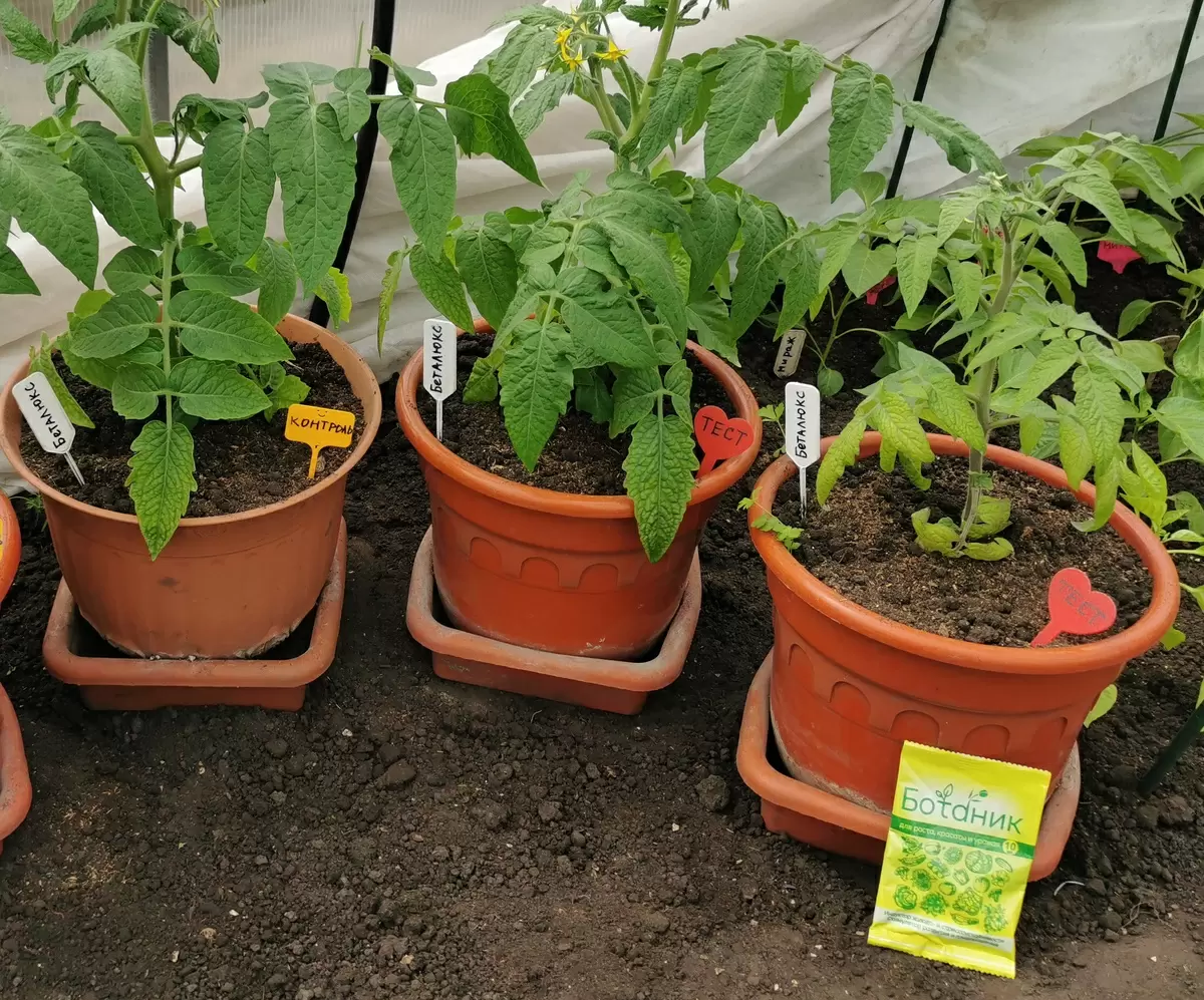 В качестве тестовых объектов выбраны томаты сорта 'Беталюкс'. Для чистоты эксперимента на два растения была нанесена заявленная обработка, а два остальных использовались в качестве контрольной группы. Внимание к деталям было важным: все растения были подписаны, чтобы четко отделить результаты.