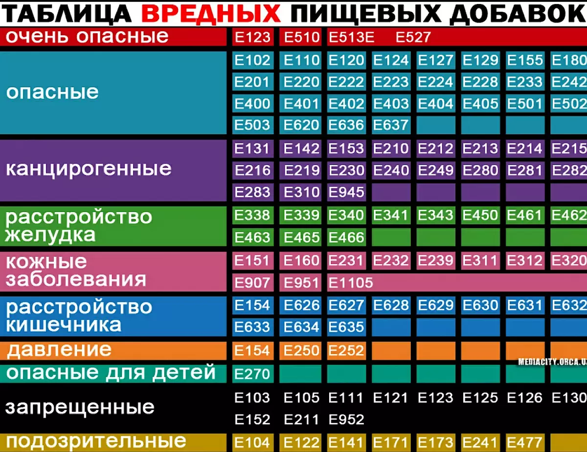 - E621 (Глутамат натрия): часто встречается в фастфудах и готовых продуктах. У большей части людей он не вызывает негативных реакций, но у некоторых может провоцировать головные боли и другие симптомы, известные как "синдром китайского ресторана".