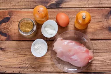 Подготовка продуктов: Начните с выбора качественного куриного филе. Если мясо заморожено, дайте ему немного времени на разморозку. Чтобы сделать текстуру более мягкой, отбивайте кусочки мяса через пищевую пленку с помощью молотка.