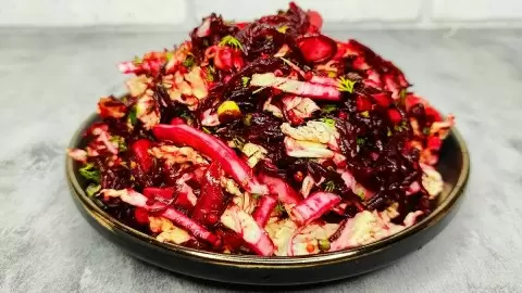 Состав салата предельно прост: свекла и капуста, дополненные ароматной зеленью и мягкой горчичной заправкой. Свежесть пекинской капусты и сладость свеклы идеально гармонируют друг с другом, делая блюдо не только полезным, но и потрясающе вкусным.