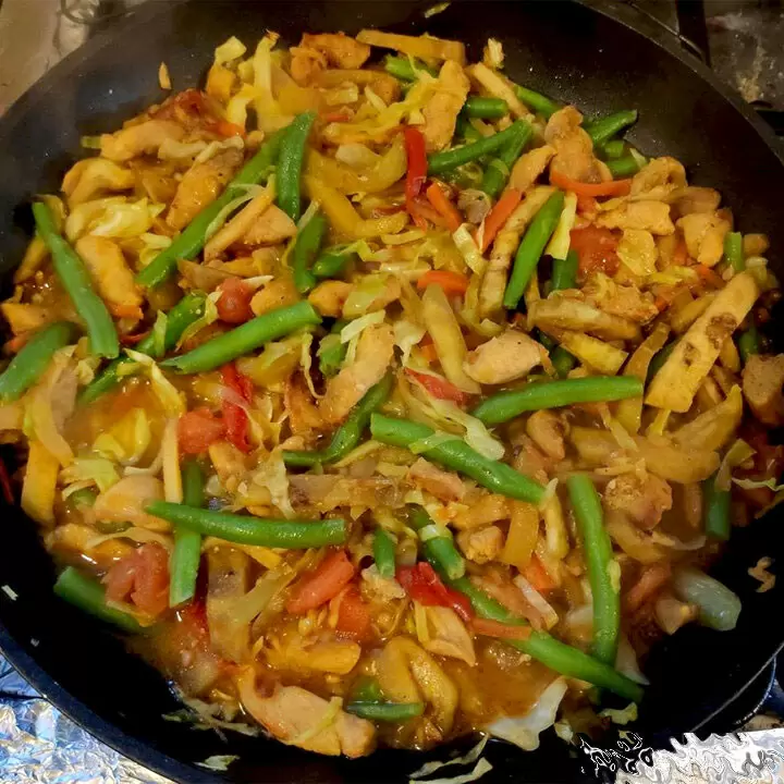 Индейку следует нарезать мелкими кусочками, как для бефстроганова. Овощи лучше всего нарезать соломкой для равномерного приготовления. Мясо необходимо обсушить и обжарить в растительном масле до легкого румянца, затем добавить лук и морковь, продолжая жарить до прозрачности лука.