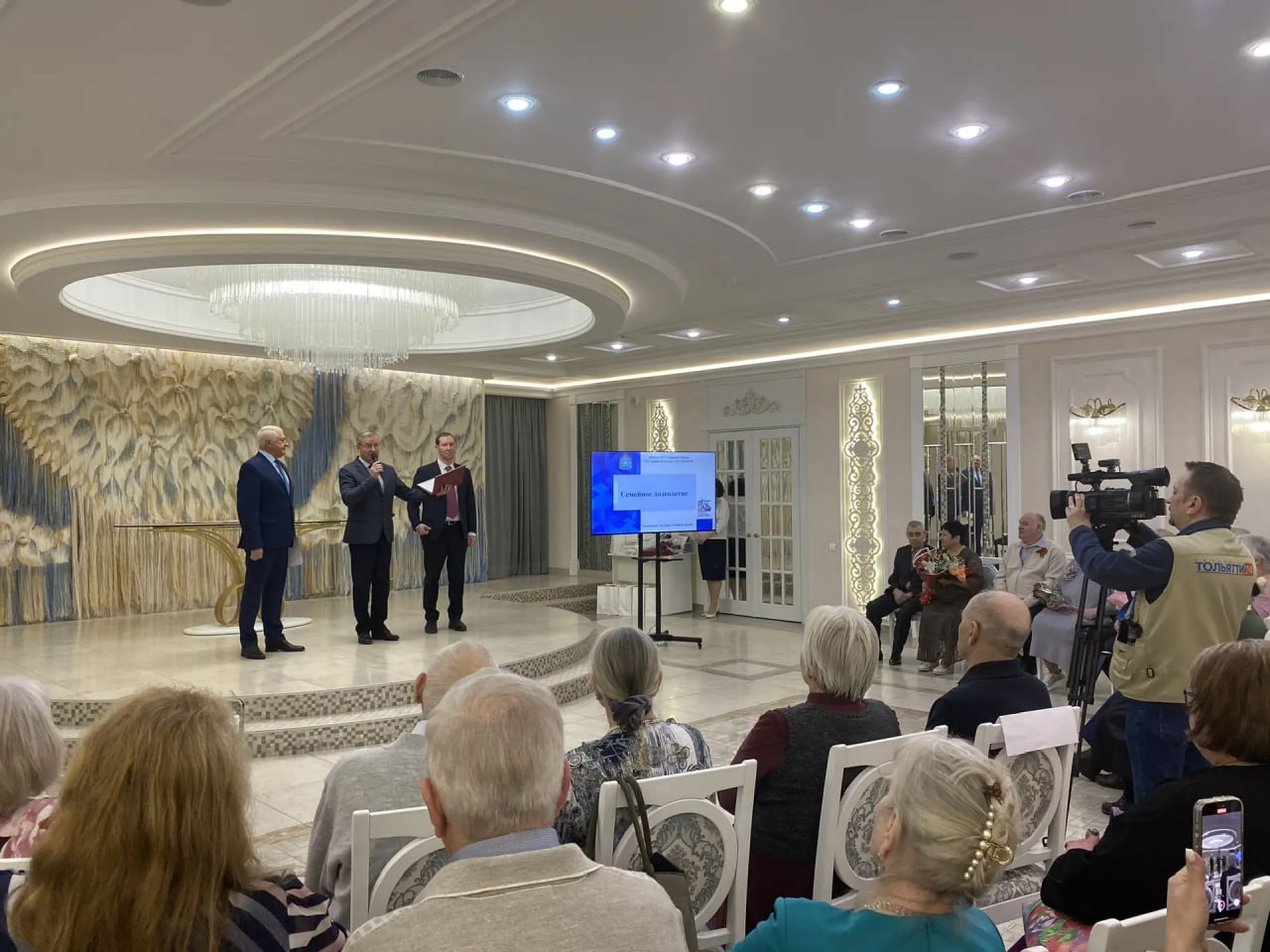 В Тольятти таких пар не мало. И сегодня юбиляров торжественно чествовали во дворце брака сочетания. В адрес золотых юбиляров звучали поздравления, творческие номера подарки и добрые пожелания.