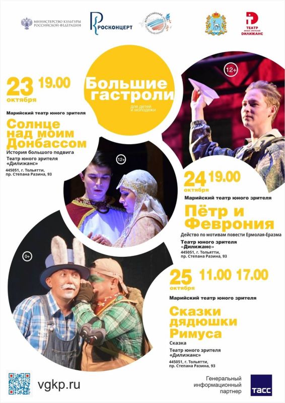 С 23 по 25 октября состоятся , организованные ФГБУК РОСКОНЦЕРТ согласно Всероссийскому гастрольно-концертному плану Министерства культуры Российской Федерации.На сцене театра юного зрителя «Дилижанс» пройдут показы спектаклей «Солнце над...